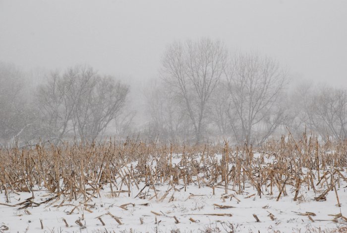 northeast of Lincoln, NE with heavy snow falling.