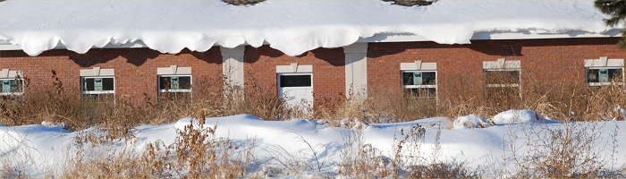 snowstorm and outside our office tower, Hardin Hall.