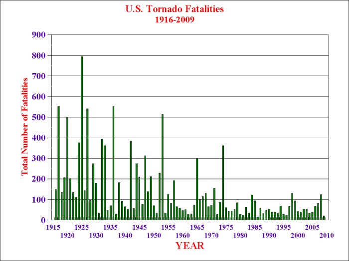 Tornado fatality data are considered fairly accurate throughout the entire 1916 to present time period.